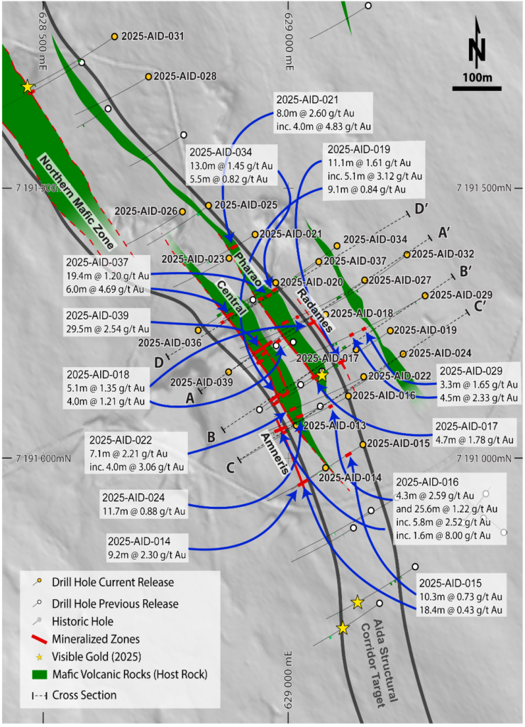 Multiple strong gold intercepts continue the expansion story at Aida including: 2.30 g/t Au over 9.2 m (2025-AID-014),- December 22, 2025