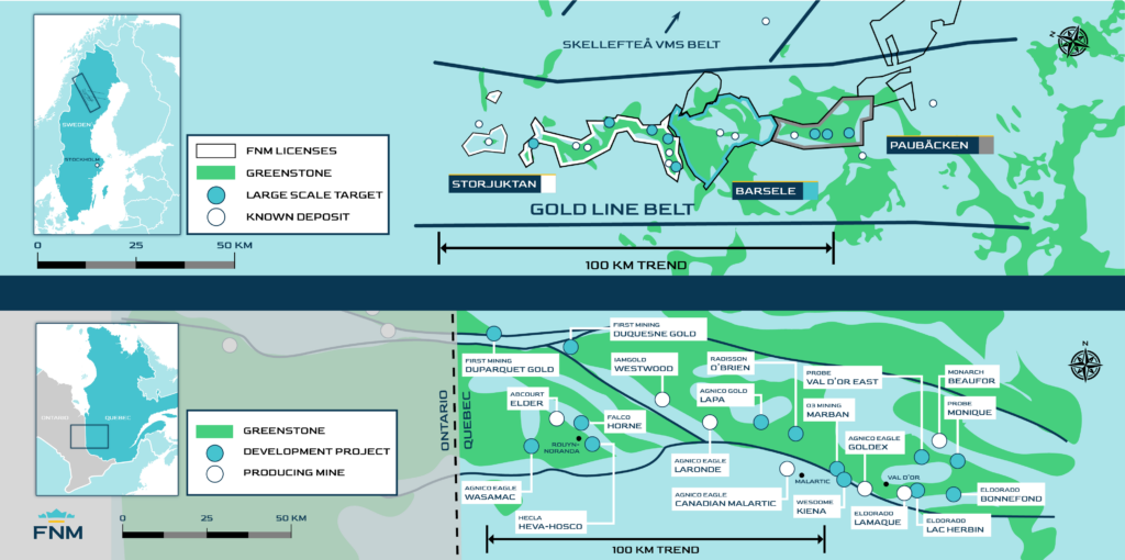 The Paubäcken Project consists of four licenses covering 19,737 hectares that cover the central part of an emerging district in north central Sweden known as the “Gold Line belt”. The Gold Line belt is host to several significant gold deposits, including the Company’s Barsele project, as well as the Svartliden gold mine and mill complex and Fäboliden development project (both operated by Dragon Mining Ltd.). The Svartliden mill is currently processing gold ores from the Fäbodtjärn gold mine, which started mining operations in 2024.