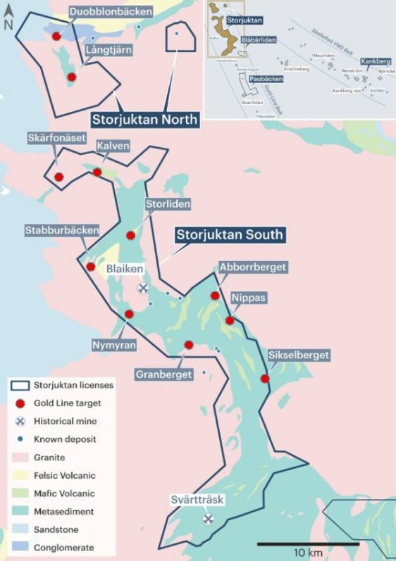 • The Storjuktan Project is a large, early-stage project strategically positioned north of the Barsele deposit.
